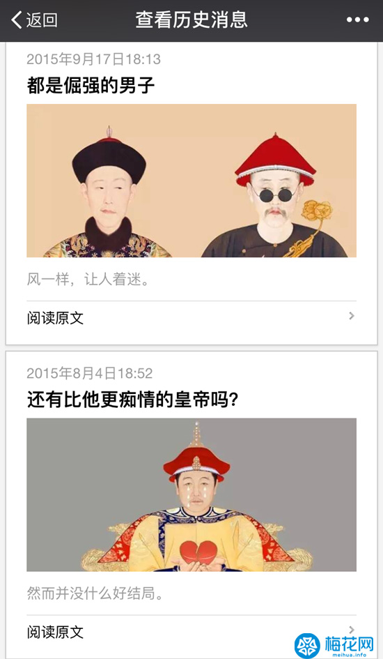 不過,各種可愛的惡搞,都讓故宮淘寶的微信公眾號(hào)的粉絲數(shù)以極快的速度增長,現(xiàn)在,這樣看起來異常神經(jīng)的文章,幾乎每篇的閱讀量都是100000+!(這讓一直在艱苦奮斗卻還沒創(chuàng)造過100000+的梅花網(wǎng)小編怎么活!)